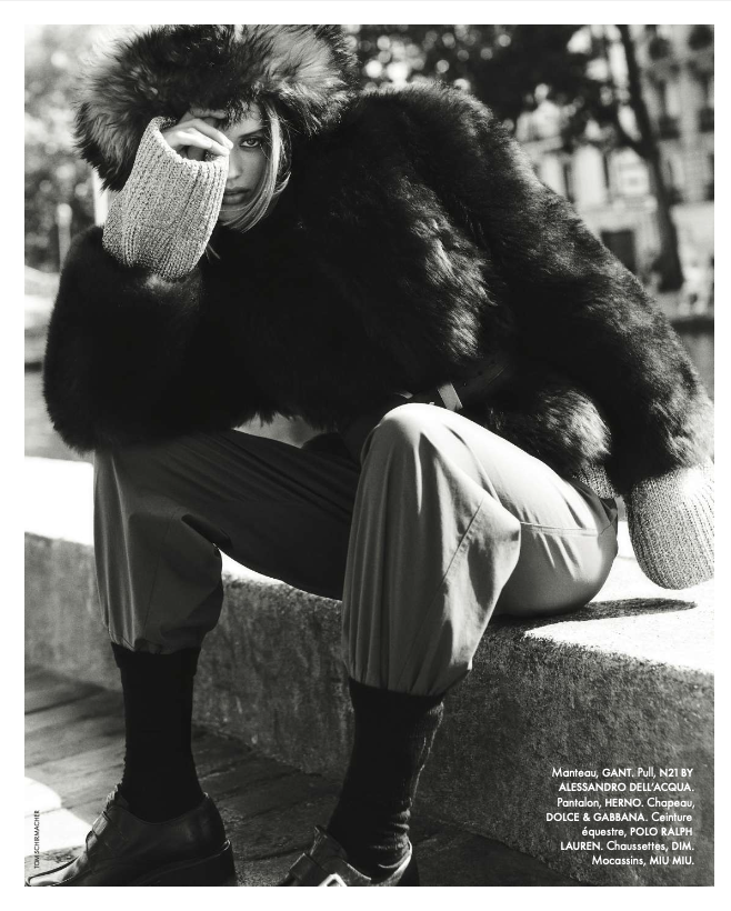 Winter Cover Story Elle France with Steffi Cook. Photographer: Tom Schirmacher, Stylist: Anne Marie Brouillet, Assistant Stylist: Poppy Read